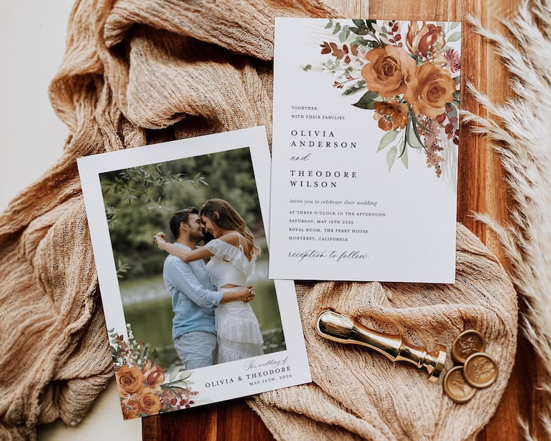 Introducing DIYBloomingPaperie, Modern Burnt Orange Rose Wedding Invitation Template Set – a perfect blend of elegance and sophistication for your big day! This beautiful set features a stunning burnt orange rose design that exudes warmth and charm, adding a personal touch to your celebration.