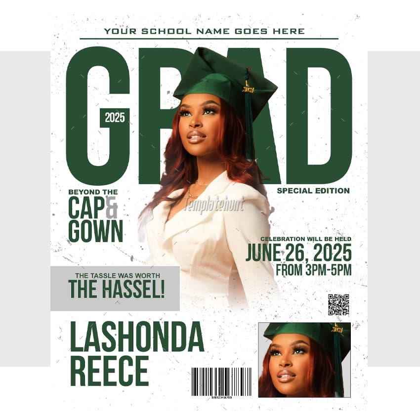 Magazine Graduation Invitation Template editable with Adobe Photoshop.