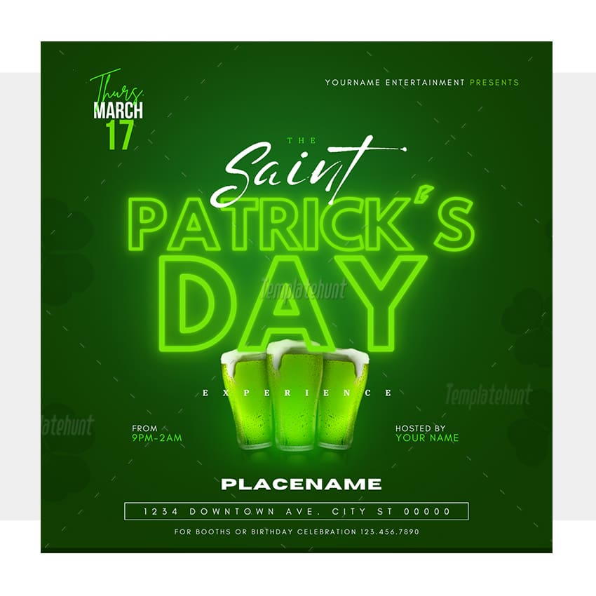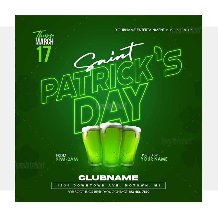 St. Patrick’s Day invitation template fully editable with Canva and Photoshop.