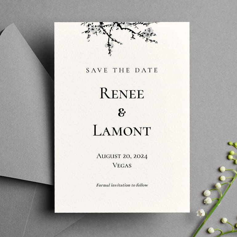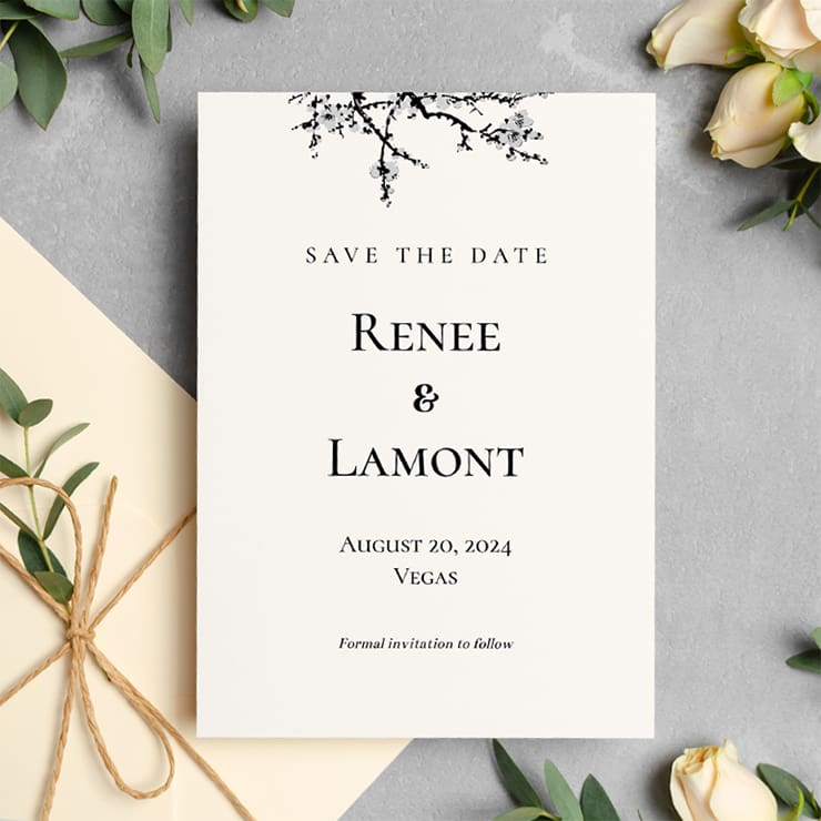 Save the Date Invitation template editable from any device. Save, download, and print from the comfort of your home.